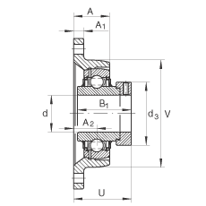 | 带两个螺栓孔的法兰的轴承座单元,铸铁, 偏心锁圈, L型密封,适合温度从 -40°C 到 +180°C |